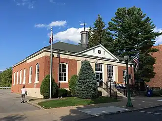 US Post Office-Boonville is a historic post office building located at Boonville in Oneida County, New York, United States. It was designed and built in 1937, and is one of a number of post offices in New York State designed by the Office of the Supervising Architect of the Treasury Department, Louis A. Simon. It is a one-story, five bay building with a poured concrete foundation and brick facades in the Colonial Revival style. It features a hipped roof surmounted by an octagonal cupola with metal window tracery and an iron weathervane. The interior features a mural painted by the McCullough sisters of New York City depicting a 19th-century scene on the Black River Canal. It is a contributing structure within the Boonville Historic District.[2]