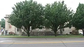 The United States Post Office, located at 1701 Charleston Ave., is the former main post office of Mattoon, Illinois. The post office was constructed in 1913 by Mangnus Yeager & Son, a building company from Danville, Illinois. The building was designed in the Classical Revival style and features Renaissance Revival influences; James K. Taylor was the Supervising Architect for the building. The front of the building features seven arches in front of a portico containing the entrance, which is located at the top of a marble staircase. The three central arches are topped by a carved frieze, and marble cartouches separate each pair of arches. The building served as Mattoon's post office from its construction until 1980, when a new post office opened.[2]