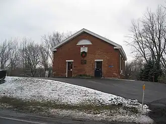 Newtonville Post Office is a historic post office building located at Newtonville in Albany County, New York, United States. It was built in 1852 as the First Baptist Church. It is a one-story, rectangular red brick building with a gable roof. The Rev. William Arthur, father of President Chester Alan Arthur lived at Newtonville from 1855 to 1863 and according to tradition is believed to have preached in the church. Church use ceased in the late 19th century and the building was used as a school, bus garage, farm machinery sales office, and after 1940 as a post office.[3]