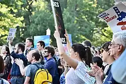 The decision to withdraw the U.S. was backed by many Republicans[10][11][12][13] but was strongly opposed by Democrats.[12][14][15] However, it was strongly criticized in the U.S. and abroad by environmentalists,[15][16] religious organizations,[17] business leaders,[18][19] and scientists.[16][20][21] According to polls released in 2019, a majority of Americans opposed the withdrawal.[13] Following Trump's announcement, the governors of several U.S. states formed the U.S. Climate Alliance to continue to advance the objectives of the Paris Agreement at the state level despite the federal withdrawal. As of July 1, 2019, 24 states, American Samoa, and Puerto Rico have joined the alliance,[22] and similar commitments have also been expressed by other state governors, mayors, and businesses.[7] The withdrawal from the Paris agreement impacted other countries by reducing its financial aid to the Green Climate fund.[23] The termination of the $3 billion U.S. funding ultimately impacted climate change research and decreased society's chance of reaching the Paris Agreement goals, as well as omitted U.S. contributions to the future IPCC reports.[24][25] It also affected the carbon emission space as well as the carbon price.[26] The U.S.'s withdrawal also meant that the spot to take over the global climate regime was obtainable for China and the EU.[27]