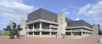 The fire destroyed 80% of the stock. The restoration of the library rooms in Domerschulgasse[3] was completed in 1957. In 1981, the new building (architect: Alexander von Branca) was occupied on the extension site Am Hubland. The building also housed the Institut für Hochschulkunde until June 2014.