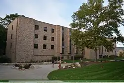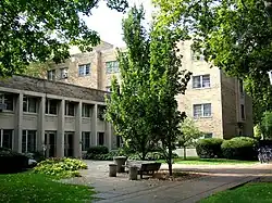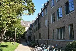 There are 33 undergraduate residence halls at the University of Notre Dame as of 2025, including 17 male halls, 15 female halls, and one mixed community.[1] Several of the halls are historic buildings which are listed on the National Register of Historic Places.[2] Residence halls are the center of the student life and some academic teaching; most students stay at the same hall for most of their undergraduate studies.[3][4][5] Each hall has its own traditions, events, mascot, sports teams, shield, motto, and dorm pride.[6][7][8] The university also hosts Old College, an undergraduate residence for students preparing for the priesthood.