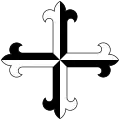 In the 1868–1935 seal, the left oval contains the Papal insignia symbolizing the apostolic concession by which the college was raised to be a university. The right oval contains the coat of arms similar to the coat of arms of Spain used in 1700-1868 and 1834–1930 to indicate the protection which Philip IV of Spain vouchsafed to the university. The center oval contains the cross of the Dominican order, which is surrounded by a rosary, crowned by the star of Saint Dominic, and flanked below by a palm branch (representing martyrdom) to its left and white lilies to the right.[34]