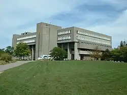The faculty was founded on January 1, 1967, a successor to the University of Waterloo's Department of Mathematics, which had grown to be the largest department in the Faculty of Arts under the chairmanship of Ralph Stanton (and included such influential professors as W. T. Tutte).[2] Initially located in the Physics building, the faculty was moved in May 1968 into the newly constructed Mathematics and Computing (MC) Building. Inspired by Stanton's famously gaudy ties, the students draped a large pink tie over the MC Building on the occasion of its opening, which later became a symbol of the faculty.[3]