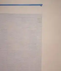 This large scale abstract, contemporary painting consists of beige paper mounted on canvas. A stroke of indigo blue paint is on the top of the painting, stopping 1/3 through. A series of blue ink squares, filled with lines, resides on a large portion of the canvas. This painting was acquired by The Broad on January 31, 1997.[1]