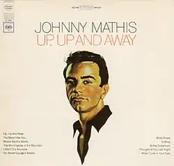 Up, Up And Away is an album by American pop singer Johnny Mathis that was released on October 23, 1967,[1] and was the first LP he recorded upon returning to his first record label, Columbia Records, where he then stayed for several decades after having just completed a four-year sojourn with Mercury Records. The title track starts the album on the contemporary end of the spectrum of material covered here, but Mathis also includes a standard from the 1940s ("The More I See You"), a hit that charted twice for the same artist in the 1950s ("Morning Side of the Mountain"), a trio of songs from Doctor Dolittle ("At the Crossroads", "When I Look in Your Eyes", and "Where Are the Words"), and two songs that had lyrics added after originating as instrumentals: "Drifting" began as part of the score to the 1958 film Auntie Mame, and "Far Above Cayuga's Waters" was "a theme song of Cornell University before saxophonist Dave Pell retooled it and Sammy Cahn adapted the delightful fairytale-like lyrics."[6]