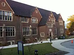 The land was purchased in 1913[40] at a time when the city of Toronto was quickly growing around the college's Deer Park campus and the trustees were considering moving the school to a new location. The 500 acres of land had been purchased by miller Robert Noble in 1868 and managed by his son Dr. Robert Noble Jr.[70] Plans for buildings were drawn up by an architectural firm. However, due to the outbreak of the First World War and then the depression, the move was fully abandoned in the 1930s.[16] The college first attempted to sell the land in 1928 and again in 1935, but found no buyers.[71] Eventually, the property was developed into an outdoor education centre for UCC students and community. Beginning in 1913, an annual picnic was held at Norval, the first being catered by the King Edward Hotel. As the land had originally been cleared for agricultural use, much of the site was open field until over 700,000 seedlings were planted by staff and students through the 1940s,[72] followed by the creation of an arboretum in 1962.[71] The first bunk house was built in the 1930s and augmented in 1967 by another, larger residence and dining building known as Stephen House,[16] which won a Massey Medal for excellence in architecture for the designer, Blake Millar.[41] Stephen House contains a classroom and laboratory, in addition to the residential spaces for students and staff. There is also a bungalow-style residence for the property caretaker and in 2003 several log cabins were built for writing retreats.