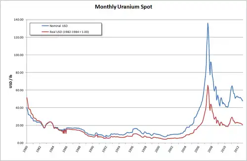 - ^ "NUEXCO Exchange Value (Monthly Uranium Spot)". Archived from the original on 12 December 2007.