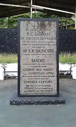Constable Shaban was killed on 21 March 1864 in the attempt to apprehend Saradiel, and was the first Ceylonese policeman to be killed in the line of duty. March 21 is when fallen Sri Lanka Police are commemorated.