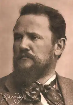 Brožík was born on 6 March 1851 in Třemošná, Bohemia, Austrian Empire (now the Czech Republic). He came from a poor family, studying lithography and porcelain painting through apprenticeships. Beginning in 1868, with financial assistance from a local landowner, he was able to attend the Academy of Fine Arts in Prague. He made a trip to the Netherlands, where he studied the Old Masters, then settled in Paris (despite not being able to speak French), where a letter of recommendation assured him the support of Jaroslav Čermák. In 1879 he married Hermina Sedelmeyer, daughter of the wealthy Parisian art dealer Charles Sedelmeyer.[1] For most of his life, he divided his time between Paris and Prague, where he became a Professor at the Art Academy in 1893.