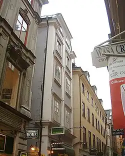 - ^ a b c d Glase, Béatrice; Gösta Glase (1988). "Västra Stadsholmen". Gamla stan med Slottet och Riddarholmen (in Swedish) (3rd ed.). Stockholm: Bokförlaget Trevi. pp. 70–71. ISBN 91-7160-823-0.