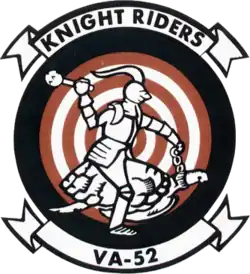 VA-52 was an Attack Squadron of the U.S. Navy. It was established as U.S. Navy Reserve Fighter Squadron VF-884 on 1 November 1949, and called to active duty on 20 July 1950. It was redesignated VF-144 on 4 February 1953, and VA-52 on 23 February 1959. The squadron was nicknamed the Bitter Birds from about 1951–1953, and the Knightriders from about 1960 onward. Its insignia evolved through several versions and variations from 1951 to the 1980s.[1] VA-52 was decommissioned on 31 March 1995.[2]
