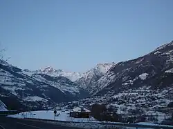 The Valpelline branches from the Great St Bernard Valley near Gignod and rises to the Collon Pass, which it shares with Valais, and which is located at the foot of the Grand Combin, whose peak is across the border in Switzerland.