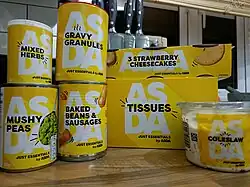 Asda's Smartprice logo and packaging has changed several times since its introduction. It was revised[5] in 2012 to match the branding of Walmart's Great Value line at the time,[6] but a further redesign in 2014 and 2017, removed the similarity in visual style. On 28 March 2022, Asda announced the Smartprice brand would be replaced by a new brand, Asda Just Essentials, commencing May 2022. The similarity between the new brand name and Waitrose's own budget brand, Essential Waitrose, launched in 2009, has led to Waitrose issuing a legal letter to Asda, raising trademark concerns although this was later dropped.