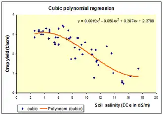 Cubic regression to find the relation between crop yield and soil salinity