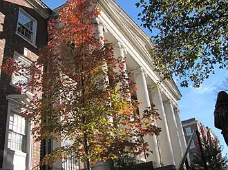 The design of the Peabody campus was inspired by the classical lines of Thomas Jefferson's design for the University of Virginia's Academical Village and the architecture of the 1893 World's Columbian Exposition in Chicago, Illinois.[7] In contrast to the main Vanderbilt University campus, which is characterized by collegiate gothic architecture, Peabody's buildings and campus layout are examples of Palladian and Neoclassical styles of architecture.