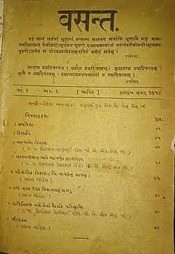 Ramanbhai Neelkanth edited the magazine from 1912 to 1924, with Dhruv resuming editorship again from 1925. Irregular publication led to Vasant becoming a quarterly in 1936. It was disestablished in 1939.[2]