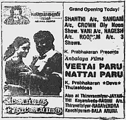 - ^ a b "Veettai Paru Naattai Paru". The Indian Express. 5 February 1994. p. 4. Retrieved 12 March 2019 – via Google News Archive.