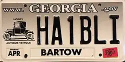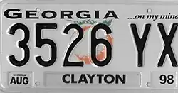 - ^ a b c d Tanner, Eric N. "Georgia License Plates". allaboutlicenseplates.com. Retrieved January 21, 2016.
