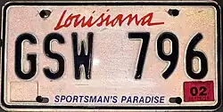 - ^ a b c Tanner, Eric N. "Louisiana Passenger License Plates". allaboutlicenseplates.com. Retrieved November 20, 2020.