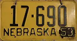 - ^ a b c Tanner, Eric N. "Nebraska Passenger License Plates". allaboutlicenseplates.com. Retrieved November 11, 2020.