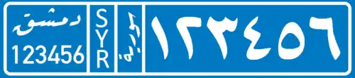 - ^ "النقل : نموذج جديد للوحات المركبات في سورية [Transportation: A new model for vehicle license plates in Syria]". Presidency of council of Ministers. 2024-09-23.