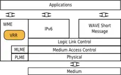 Vehicular Reactive Routing protocol (VRR)[1] is a reactive routing protocol with geographical features which is specifically designed for Wireless Access for the Vehicular Environment (WAVE) standard in vehicular ad hoc networks (VANETs). The protocol takes advantages of the multichannel scheme defined in WAVE and uses the Control Channel (CCH) for signalling, and relies on one of the multiple Service Channels (SCHs) for payload data dissemination.