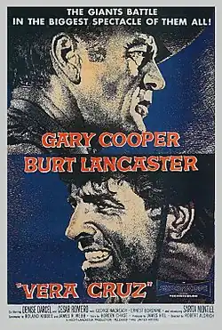Vera Cruz is a 1954 American Western film directed by Robert Aldrich and starring Gary Cooper and Burt Lancaster, featuring Denise Darcel, Sara Montiel, Cesar Romero, Ernest Borgnine, Charles Bronson and Jack Elam. Set during the Franco-Mexican War, the film centers on a group of American mercenaries tasked with transporting a large shipment of Imperial gold to the port of Veracruz, but begin to have second thoughts about their allegiances. It was produced by Hecht-Lancaster Productions and released by United Artists on 25 December 1954.
