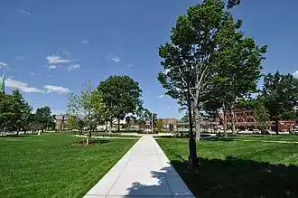 Veterans Park is a city park in the downtown area of Holyoke, Massachusetts. Originally called Hampden Park when it was given to the city by the Holyoke Water Power Company in 1861, it was rededicated in 1962 to honor the city's military veterans. The park and a few surrounding buildings were listed on the National Register of Historic Places in 2012 as the Hampden Park Historic District. Included in this designation are St. Jerome's Church (built during the late 1850s), the Convent of the Sisters of Notre Dame de Lourdes (1869), and the former Central Fire Station (1914), and other buildings.[2]