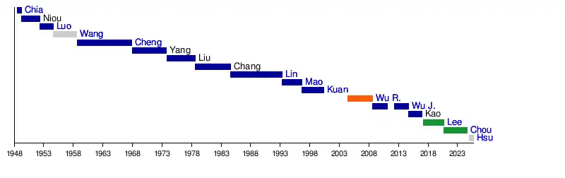 1 Sep 2008 | 30 Jan 2011 | 11 | Kuomintang | ||