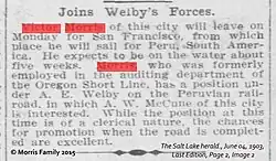 In 1903, he traveled to Peru to work as a cashier for the Cerro de Pasco Railway Company. Then, in 1915, he moved to Lima and, on April 1, 1916, founded Morris' Bar.[3]