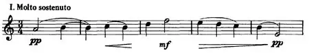 The four parts are in contrasting tempo, slow–fast–slow–fast. Both slow movements, 1 and 3, are marked Molto sostenuto (aber nie schleppend) (but never dragging), both fast movements Vivace.