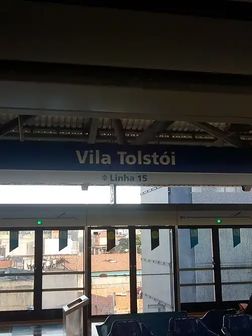 Vila Tolstói is a monorail station of São Paulo Metro. Belongs to Line 15-Silver, which is actually in expansion, and should go to Cidade Tiradentes, with connection with Line 2-Green in Vila Prudente. It is placed in Av. Prof. Luis Inácio de Anhaia Mello, 7753, next to Rua Angical do Piauí, in the border of the districts of São Lucas and Sapopemba.