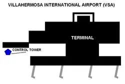 Villahermosa International Airport (Spanish: Aeropuerto Internacional de Villahermosa); officially known as Aeropuerto Internacional Carlos Rovirosa Pérez (Carlos Rovirosa Pérez International Airport) (IATA: VSA, ICAO: MMVA) is an international airport located in Villahermosa, Tabasco, Mexico. It serves the Metropolitan Area of Villahermosa, the entire State of Tabasco, and Northern Chiapas. The airport offers domestic flights within Mexico and supports various tourism, flight training, and general aviation activities. It is named in honor of Carlos Rovirosa Pérez, a pioneer of Mexican aviation, who was born in Villahermosa. The airport is operated by Grupo Aeroportuario del Sureste (ASUR). In 2023, the airport handled 1,396,653 passengers, and in 2024, it served 1,481,067 passengers, an increase of 6.0% according to ASUR.[1]