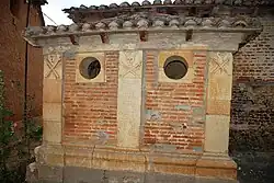 The church is of Romanesque origin. In the front side of the church there is a picture of a head, sculpted in stone. There are also two little quotations sculpted in the stone. The first and the biggest one says: