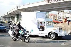 24. ^ a b de Lara, Ivan Angelo (January 16, 2015). "Why Pope Francis didn't ride popemobile on the way to Malacañang". Philippine Daily Inquirer. Retrieved January 16, 2015.