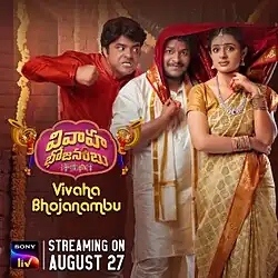Vivaha Bhojanambu (transl. Wedding feast) is a 2021 Indian Telugu-language comedy film directed by Ram Abbaraju.[1] The film stars Satya, Sundeep Kishan and Aarjavee.[2] It is produced by K. S. Sinish and Sundeep Kishan. It is Sundeep Kishan's third film as a producer.[3] This film was premiered on SonyLiv on 27 August 2021.[4]