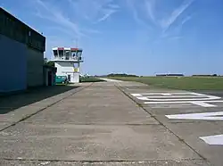 There are several outbuildings, a tower (132.990 MHz), four hangars, one club house, one restaurant and a filling station with oil service. For gliders there is a ground-based winch launch facility and a tug aircraft.