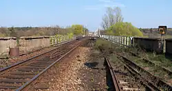 On 20 April 1945, there was an air raid on Piesteritz station, which blew up several wagons and also caused significant damage to a nitrogen plant. The explosion was so powerful that the wheels and axles of a tank wagon were hurled 500 metres to the present federal highway 187.[2]