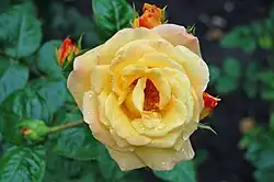 Reimer moved on from shrub roses to concentrate on brilliantly coloured Hybrid Teas and Floribundas for private and public gardens. Nevertheless, he introduced roses of every type: large-flowered climbers such as 'Alchymist' (1956) and 'Antike 89' (1988); ground cover roses such as 'Immensee' and 'Sommerwind'; Hybrid Teas including 'Duftzauber 84' (1984) and 'Kupferkönigin' (1996); shrubs such as 'Chiarivari' (1970), 'Lucinde' (1988), and 'Rosenstadt Zweibrücken' (1989); Floribundas such as 'Golden Holstein' (1988) and 'Crimson Bouquet' (1999); and cut-flower roses such as 'Champagner' (1985).[1]