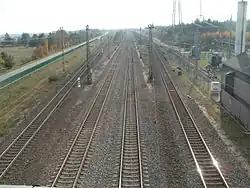 During the planning and construction, the track was divided for planning approval purposes into sections 4b (northern section, Philippsburg area) and 4c (southern section, Graben-Neudorf area). The new Mannheim–Stuttgart railway in the section from the entrance and exit to Graben-Neudorf was included in section 4a (Waghäusel).[5] In the mid 1970s, the entrance and exit tracks from the new line were designated as Überholbahnhof Oberhausen (Oberhausen crossing station) and the plans provided for overtaking movements.[6] Such overtaking was no longer envisaged in the planning in 1979.[7]