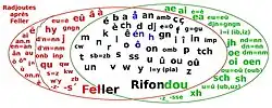 The Feller system was developed to transcribe Walloon dialects by Jules Feller and was first published in 1900.[1] In the Feller system, the same word can be spelled differently depending on dialect: the word "fish" would be spelled pèchon by a speaker who pronounces the word as [pɛʃɔ̃] (with an 'sh' sound), but would be spelled pèhon by a speaker who pronounces the word as [pɛhɔ̃] (with an 'h' sound). In Common Walloon, however, the same word "fish" is always spelled pexhon, regardless of the speaker's pronunciation. The Common Walloon alphabet, developed through the 1990s, attempts to unify spellings across dialects, and revives some older graphemes (such as ⟨xh⟩) which were abandoned by Feller in favor of spellings which resembled standard French.[2][3]