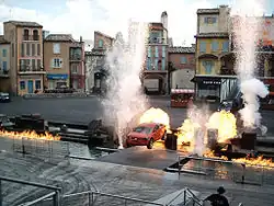 | Moteurs... Action!: Stunt Show Spectacular | 2002 | 2020 | A stunt show that showed how action movies are filmed, using car and motorbike stunts. There was also a clone of the attraction at Disney's Hollywood Studios in Orlando which closed in 2015. This attraction closed on 13 March 2020, as the final attraction of the area. The closure was moved earlier due to the COVID-19 pandemic in France, as it was initially planned to stay for a short time longer, but instead closed. Following the announcement, Walt Disney Studios Park announced that the Paris version of the show will be replaced by a new show, Alice & The Queen of Hearts: Back to Wonderland, and the area was renamed Theater of the Stars, which opened on 24 May 2024, and ran until 29 September 2024. The arena is now considered part of Production Courtyard. |