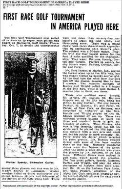On October 7, 1915, Walter Speedy won the first Golf Tournament ever hosted in the US by expert "Race" golfers (African-American) and was held at Marquette Golf Links.[4]