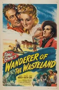 Wanderer of the Wasteland is a 1945 American Western film directed by Wallace Grissell and Edward Killy and starring James Warren in his RKO debut replacing Robert Mitchum who had starred in Nevada and West of the Pecos from the same screenwriter and director. Richard Martin, and Audrey Long also star in the film. The screenplay was written by Norman Houston loosely based on the 1923 novel Wanderer of the Wasteland by Zane Grey, the film is about a young cowboy searching for the man who killed his father when he was a boy. With his lifelong friend at his side, he travels the country following his one clue—a distinctive brand on the killer's horse. When he tracks down the now elderly murderer, he finds he cannot kill him because of his feelings for the man's kindhearted daughter. Wanderer of the Wasteland was filmed on location in Lone Pine, California. Produced by RKO Radio Pictures, the film was released on September 28, 1945 in the United States.