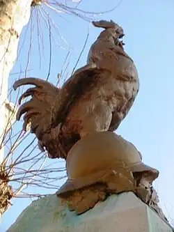 The German helmet on the Vron war memorial