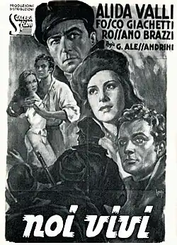 The film version of Ayn Rand's novel We the Living was made in Italy by Scalera Films in 1942. Rand's novel was considered a political hot potato by Fascist authorities in Rome, but was approved for filming due to the intervention of dictator Benito Mussolini's son.[2] Goffredo Alessandrini, one of Italy's leading directors, and his young associate director, Anton Giulio Majano, knew that We the Living touched on volatile political issues, but they hoped they would be safe from repercussions because of the story's negative portrayal of the Soviet Union, Italy's wartime enemy.[3] Alessandrini was a very successful director during Benito Mussolini's regime. His films are noted for their extreme realism, and have been lauded as anticipating the Neo-Realist movement that was to follow the end of the war. Although, initially, his films were influenced by his brief stay in Hollywood in the early 1930s for MGM Studios, he successfully made the transition from musical comedies to historical dramas and ideological propaganda films when the tide of war changed the focus of filmmaking.
