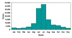 18. ^ "CDC – Cases by State – Lyme Disease." Centers for Disease Control and Prevention. https://www.cdc.gov/lyme/stats/chartstables/casesbymonth.html. 9 Sept. 2010. Web. 5 December 2011.