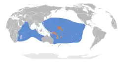 The wedge-tailed shearwater (Ardenna pacifica) is a medium-large shearwater in the seabird family Procellariidae. It is one of the shearwater species that is sometimes referred to as a muttonbird, like the sooty shearwater of New Zealand and the short-tailed shearwater of Australia. It is found throughout the tropical Pacific and Indian Oceans, roughly between latitudes 35°N and 35°S. It breeds on the islands off Japan, on the Islas Revillagigedo, the Hawaiian Islands, the Seychelles, the Northern Mariana Islands, and off Eastern and Western Australia.