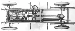 These two chassis were carried over into the 1908 season with minimum modification. A double ignition system was incorporated using both a Bosch high tension magneto and a battery and coil. The systems were independent and ignited separate spark plugs.[1] A conventional three-speed sliding selective transmission, with a single reverse, was introduced, beginning with the 1909 models.[1] Although the six-cylinder roadster employed a transaxle (transmission located at the differential), the remaining models continued to have the transmission located mid-chassis.[1]